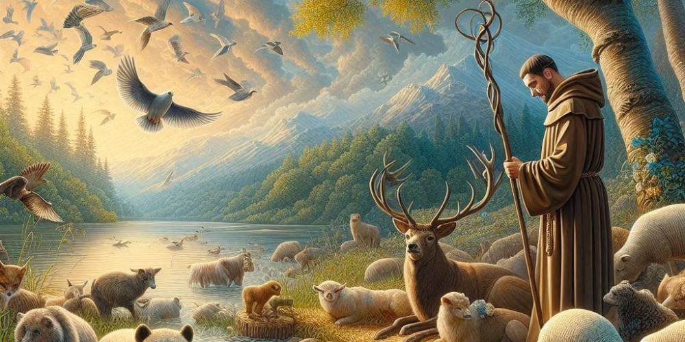 Outro aspecto marcante da vida de São Francisco foi sua profunda conexão com a natureza e os animais. Ele via a criação de Deus em tudo ao seu redor e acreditava que todas as criaturas, grandes ou pequenas, eram dignas de respeito e amor. Francisco é frequentemente retratado pregando aos pássaros, abençoando os animais e cuidando de doentes e pobres, sempre com uma compaixão imensa por todos os seres vivos.